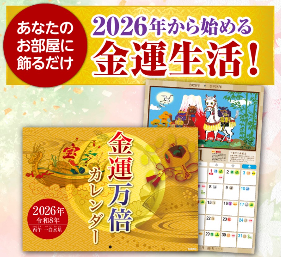 2026年は金運万倍カレンダーを飾って運気アップ!