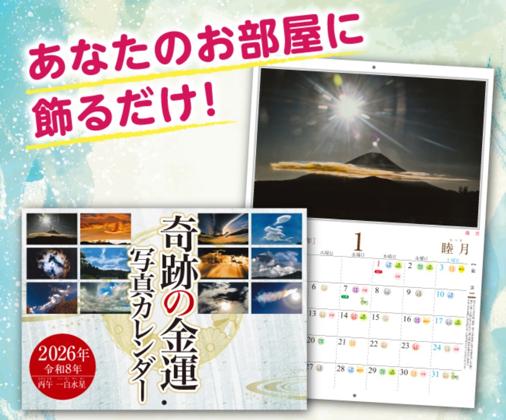 なお、この奇跡の写真カレンダーはお部屋や方位を選ばず、どこに飾っても開運パワーが期待できるとのこと。