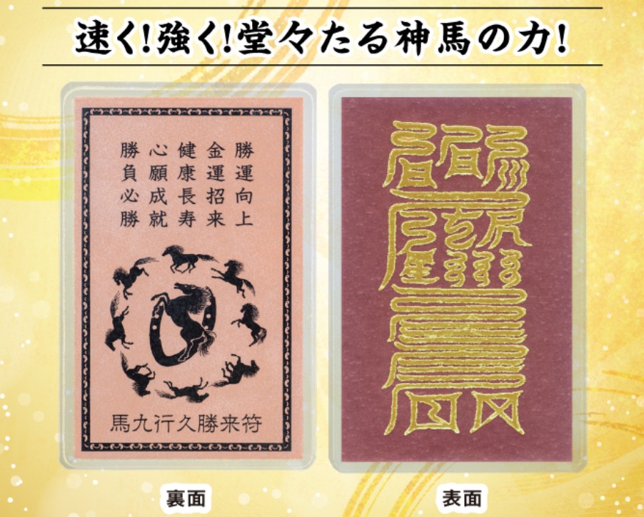 馬九行久勝来符は、神馬と勝敵符の力が重なり合うことで強力な金運力を発揮します。