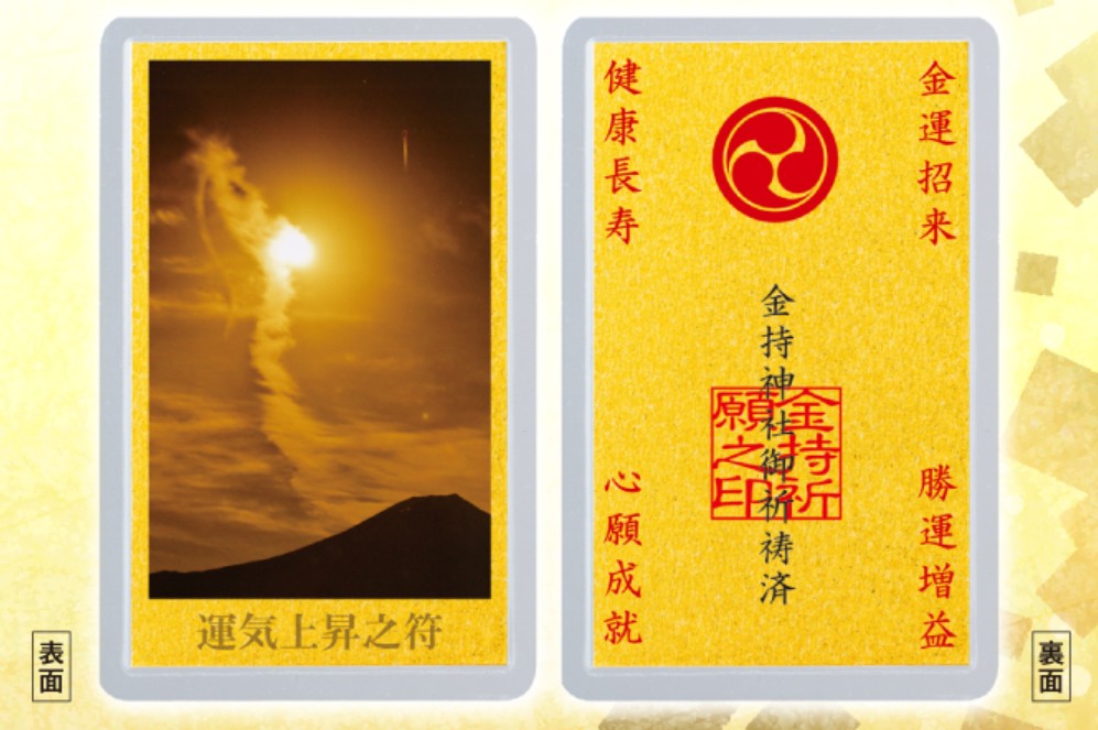 護符の表面に使用されている写真の「富士山・満月・金龍」の組み合わせは、どれも縁起の良いものであることから奇跡の構図といわれています。